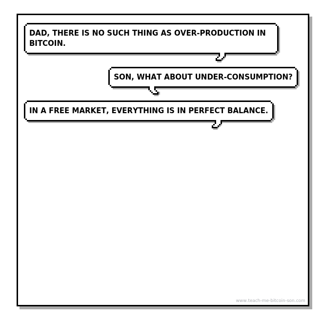 Son: Dad, there is no such thing as over-production in Bitcoin.