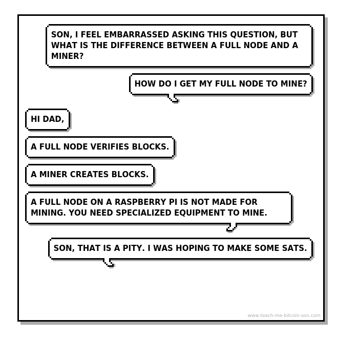 Dad: Son, I feel embarrassed asking this question, but what is the difference between a full node and a miner?