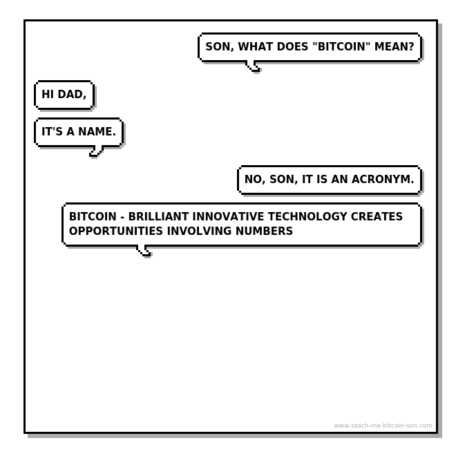 Dad: Son, what does "BITCOIN" mean?