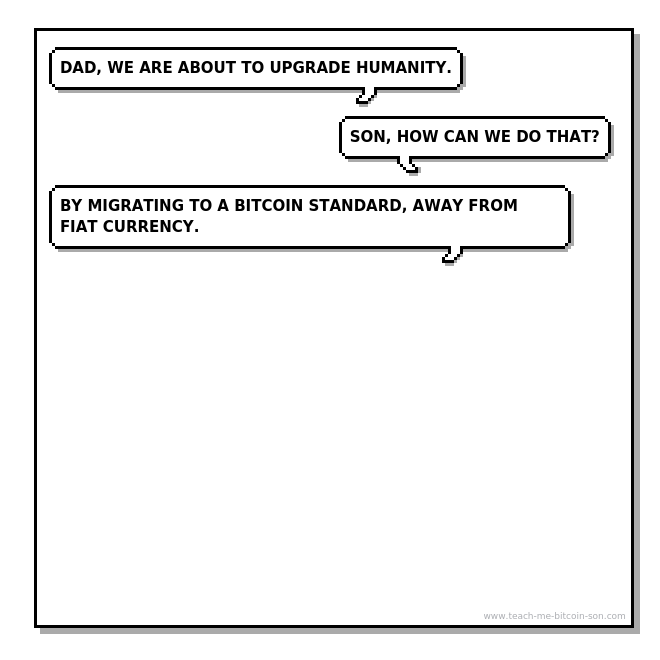 Son: Dad, don't forget to invest in your friendships. Tell your friends about Bitcoin today.