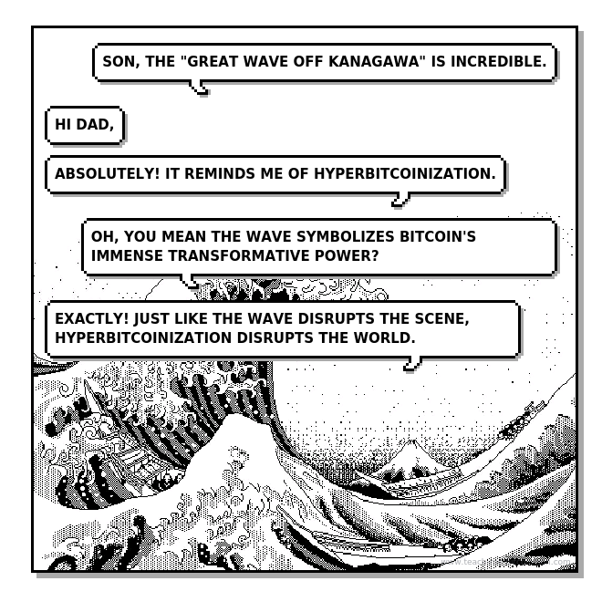 Son: Exactly! Just like the wave disrupts the scene, hyperbitcoinization disrupts the world.