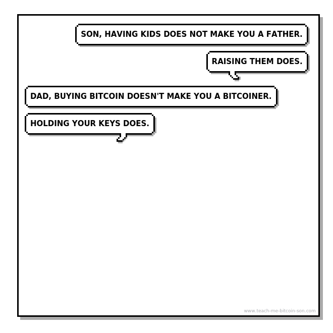 Son: Dad, buying bitcoin doesn't make you a Bitcoiner.