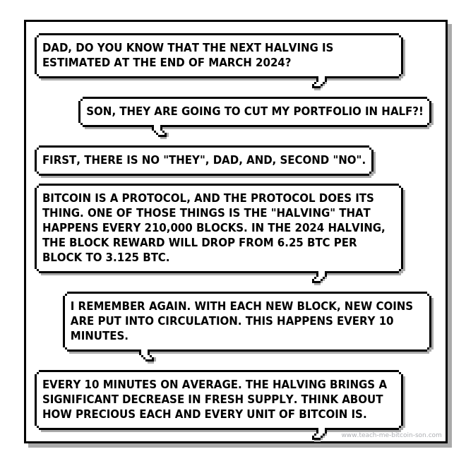Son: Dad, do you know that the next halving is estimated at the end of March 2024?