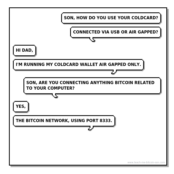 Dad: Son, are you connecting anything Bitcoin related to your computer?