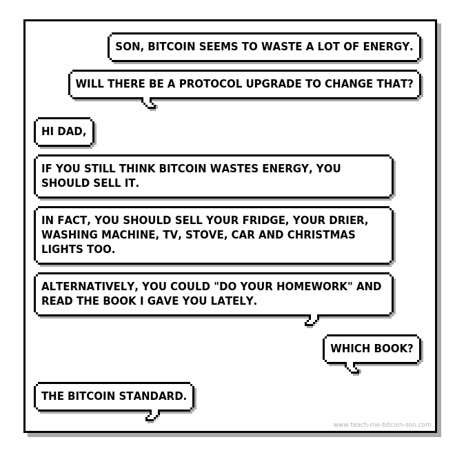 Dad: Son, Bitcoin seems to waste a lot of energy.