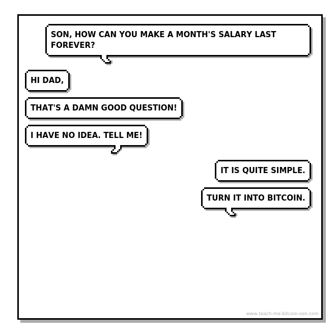 Son: Dad, don't forget to invest in your friendships. Tell your friends about Bitcoin today.