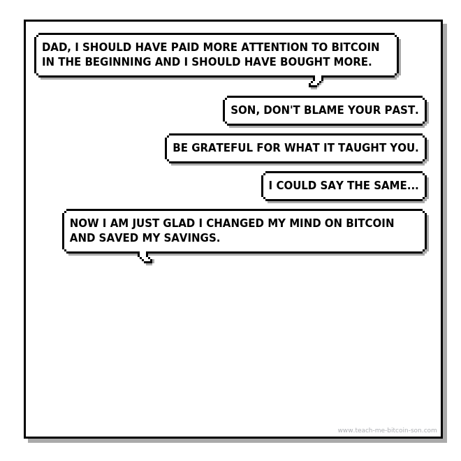 Son: Dad, I should have paid more attention to Bitcoin in the beginning and I should have bought more.