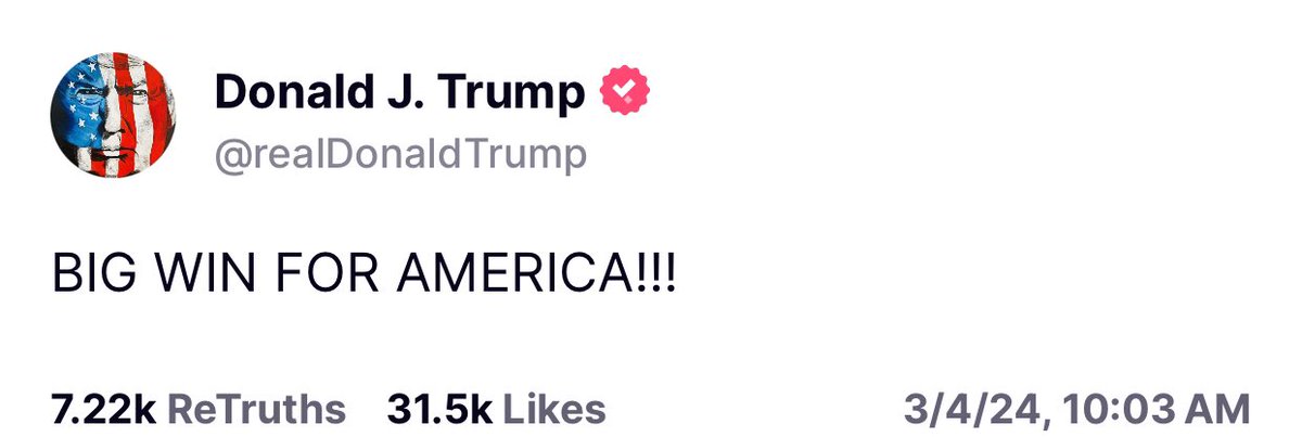 川普随后的TS文:我特意远离华盛顿特区的投票,因为那里是"沼泽",代表极少,没有上升空间。鸟脑(黑莉)把所有的时间、金钱和精力都花在了那里。上周末,我们赢得了密苏里州、爱达荷州和密歇根州的选票--赢得大数目--彻底击败了非常弱小的对手黑莉。真正的大数据将在"超级星期二"(3月5日)公布。另外,也会遙遙領先"扭曲的拜登"!