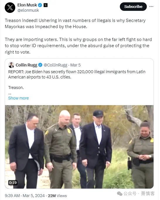 虽然不知道川马会晤的结果,但可以肯定的,马斯克会选择为川普2024大选背书。据《泰晤士报》报道,如果马斯克选择为川普背书,非法移民话题将是主要动因!
