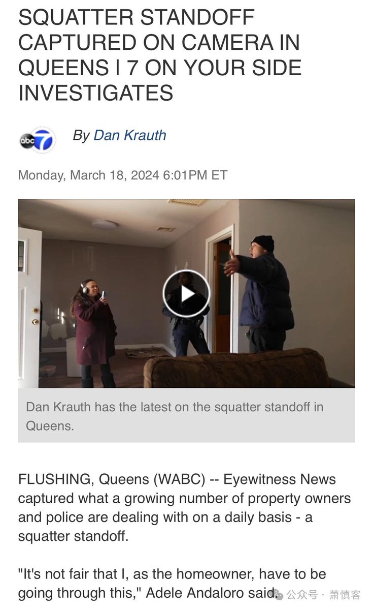 这是纽约皇后区的法拉盛 (WABC) -《目击者新闻》拍摄到的视频,真实反映出美国越来越多的业主和警察每天都要面对的问题,即业主与非法霸占者(或擅自占地者:Squatters)的对峙!
