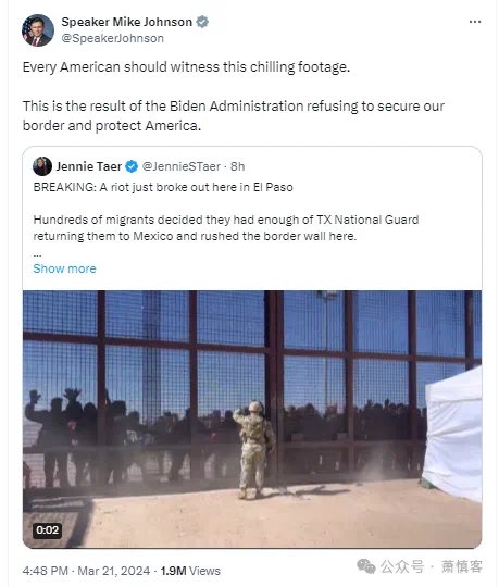 这场暴乱发生在昨天3月19日最高法院通过了德州可以逮捕非法移民法案的决定的第二天,之后出现非法移民强行闯关与用武力来对抗德州国民警卫队。