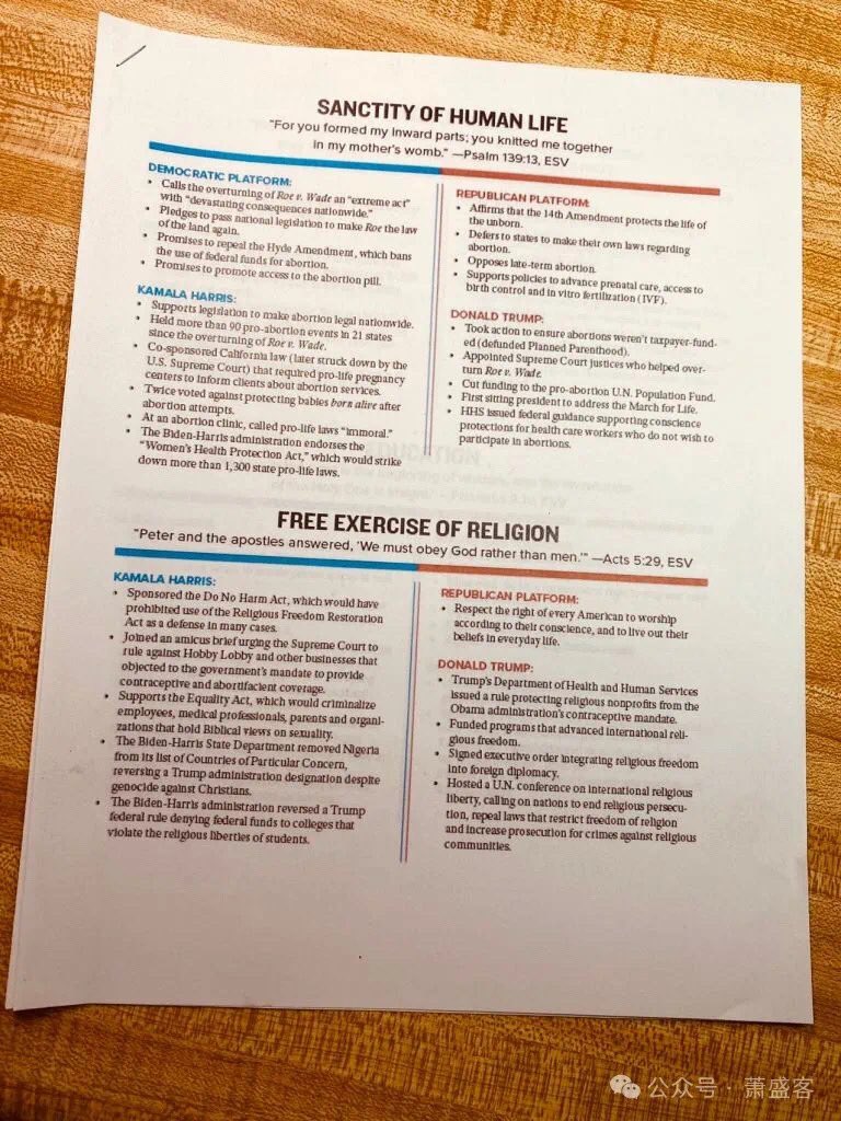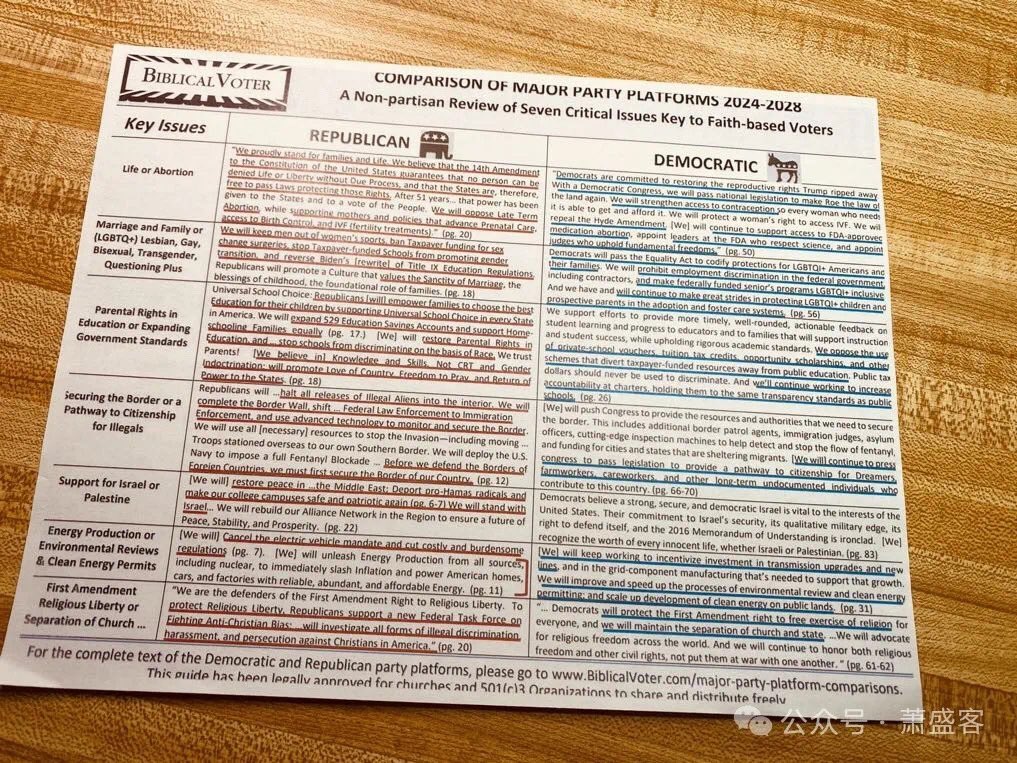 这些内容都是从两党候选人的竞选施政纲领中总结出来的,方便教会会友在详查之后根据圣经立场投票。