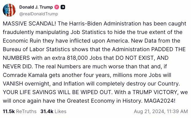 back in August 2024 when the BLS estimated that the 2024 revision would be a whopping 818,000 fewer jobs than previously reported.