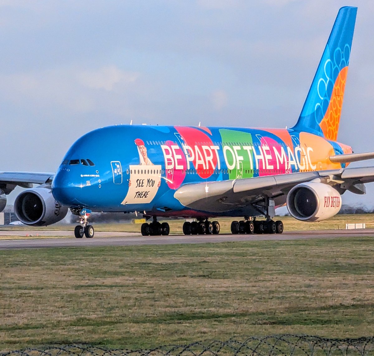 We caught the newest Emirates A380 special livery departing Manchester Airport π