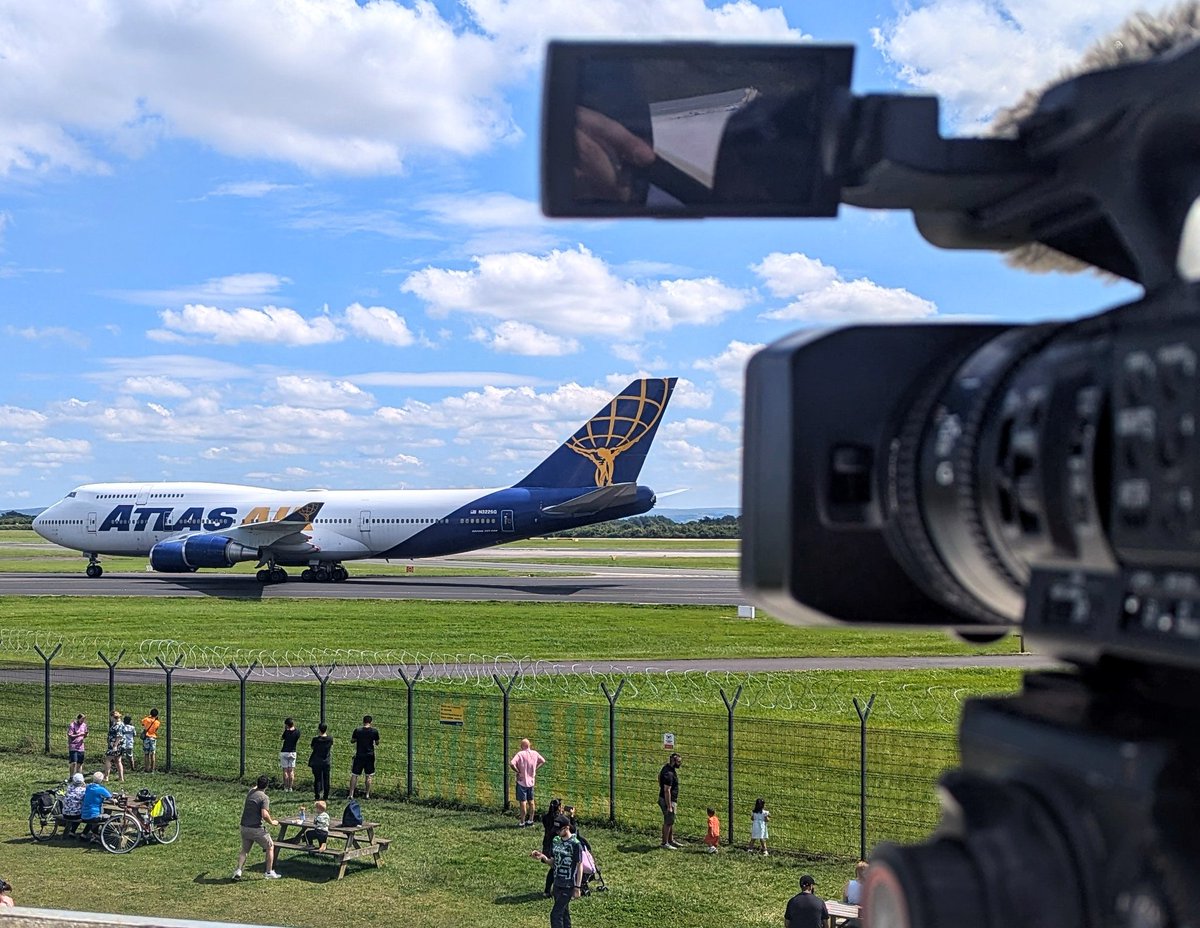 We are LIVE now - bringing you footage of the arriving Atlas Air 747 with @flightradar24 tracking it all the way!!