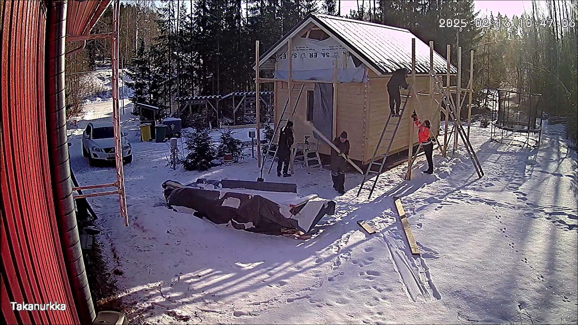 Scaffoldings are transferred to the end walls next.