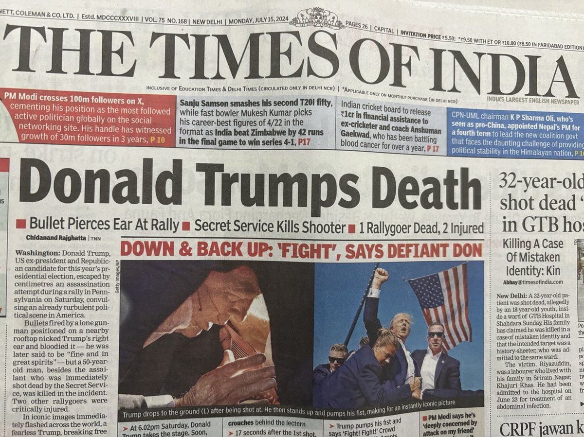 印度人抖機靈,哈哈。「唐納德戰勝死亡」的標題絕了,沒毛病,就是一不小心容易被錯看成「唐納德川普死了」,要的就是這種錯覺,你們是懂標題黨的。 https://t.co/4YX1jFGgWq