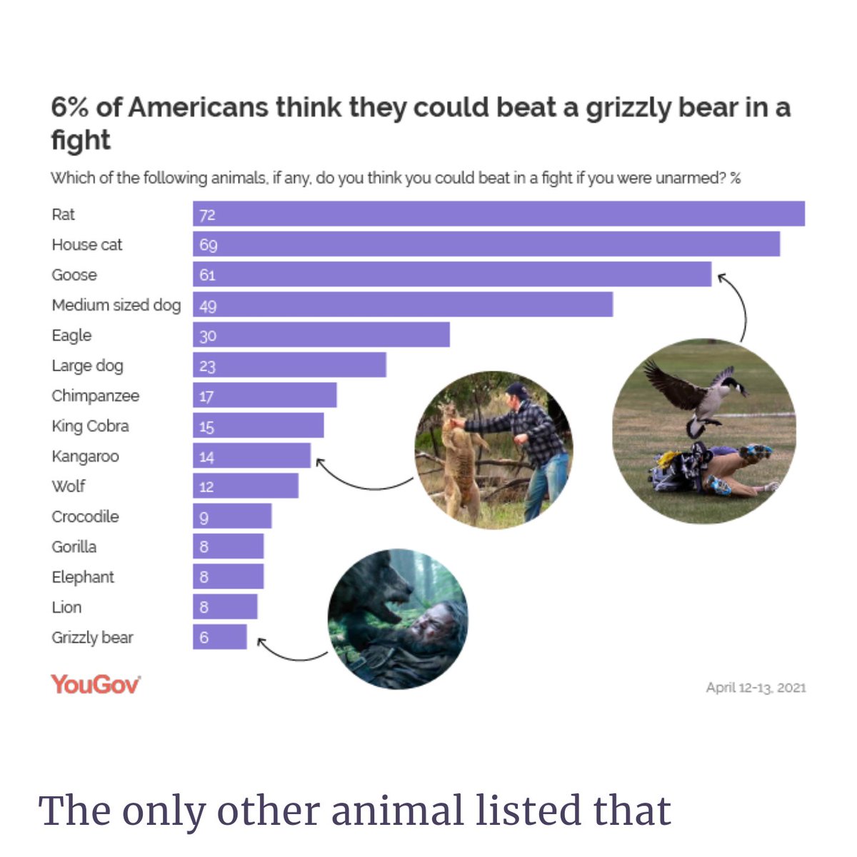 I love this survey for so many reasons. How does one kill an elephant with their bare hands? Im genuinely curious how it would work.