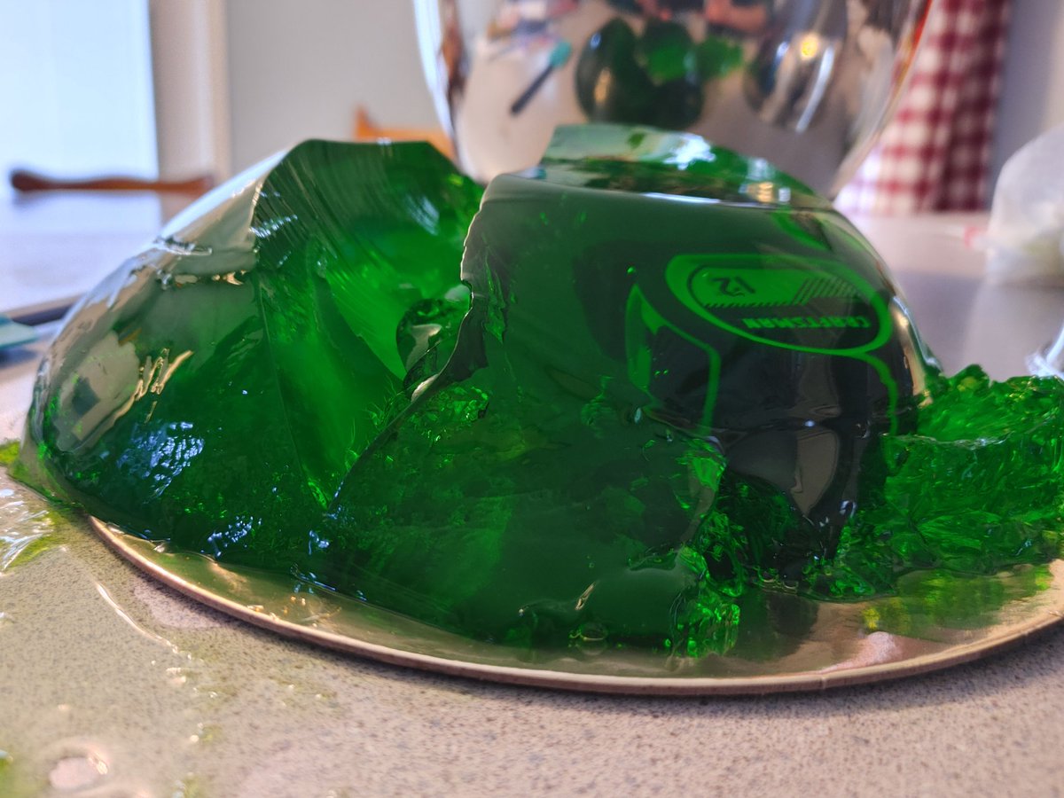 I've made plenty of jello shots, but I've never encased a gift in jello. Here's to new beginnings...