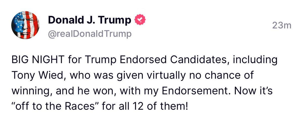 LAST NIGHT WAS A BIG NIGHT FOR TRUMP ENDORSED CANDIDATES, especially for my friend @TonyWied!