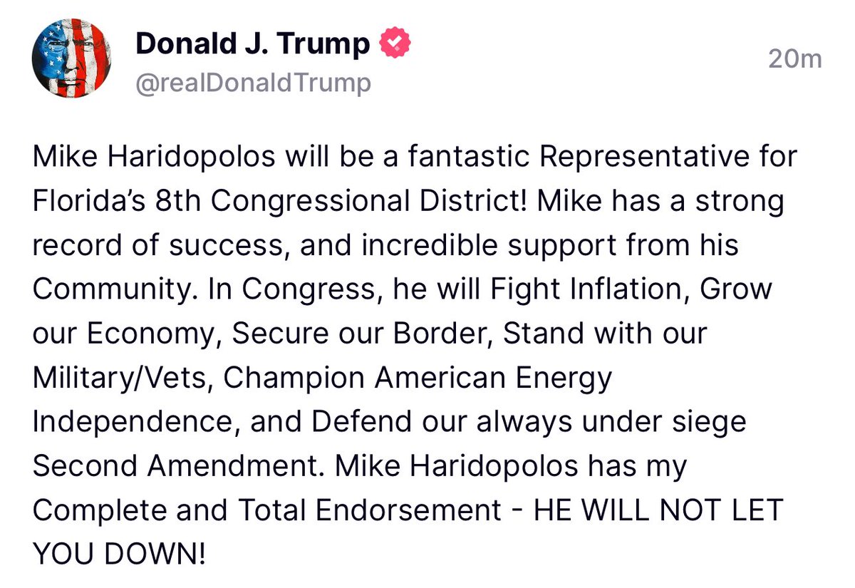 We need @MikeHaridopolos in Congress! He will be a great addition & he will always put America First! https://t.co/yJ4SxDMAbY