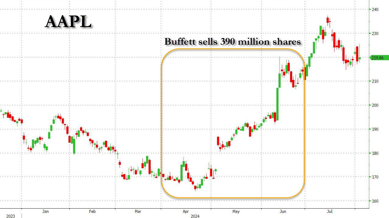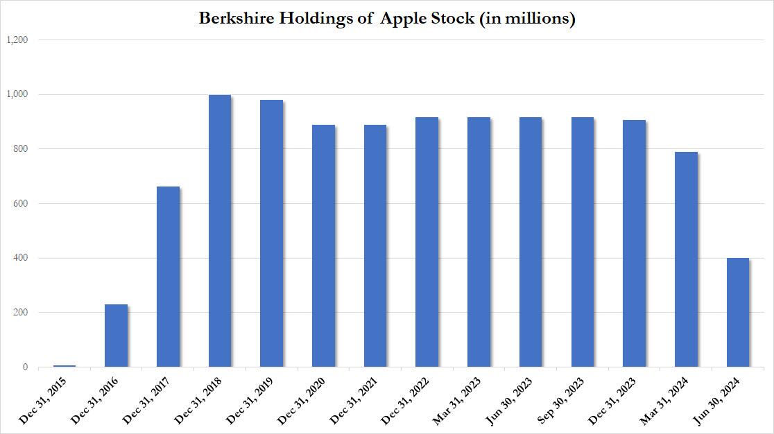 revealed deep inside the Berkshire 10Q, that billionaire Warren Buffett had sold more than half of his AAPL holdings (approximately 400 million shares according to our calculations)...