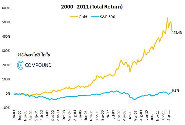 From 2000 to 2011, gold crushed the S&P 500: