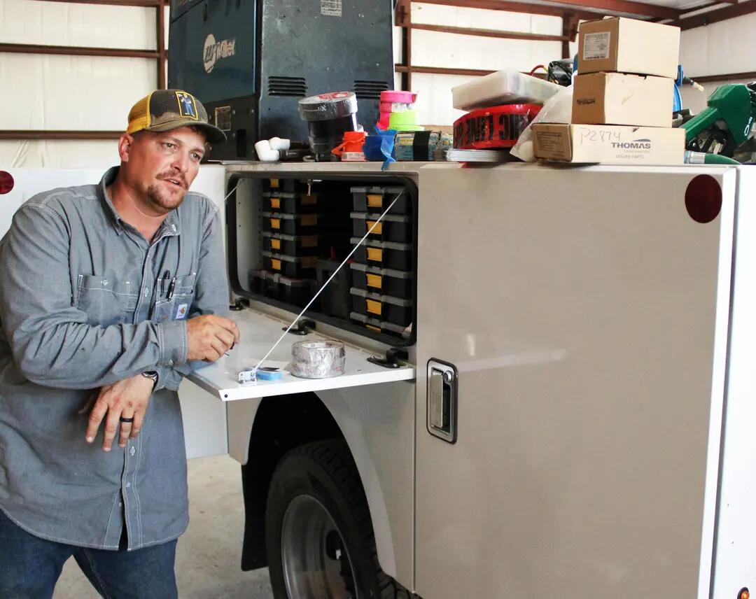 Like most ranchers, tradesmen, and blue collar workers in this Southeast Oklahoma town, Burkett has amassed a variety of skills. He welds, fixes equipment, repairs plumbing, builds things, and operates all kinds of vehicles.