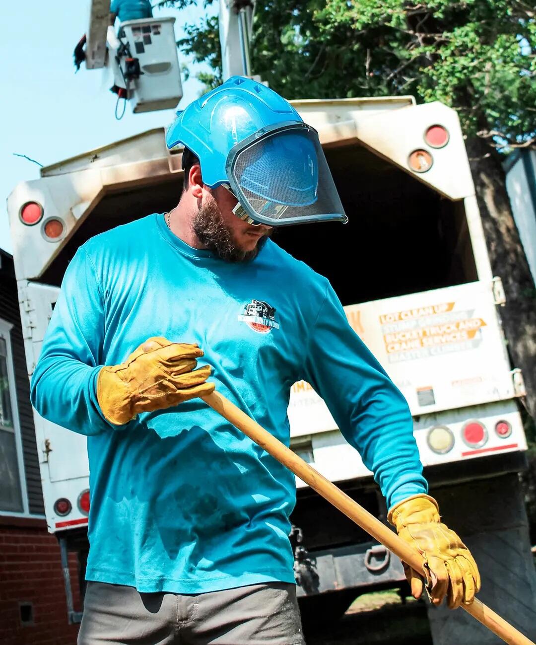 Along with co-workers DJ Henson and Billy Derryberry, he trims limbs away from roofs and electrical lines and removes trees that could fall on buildings or other property.