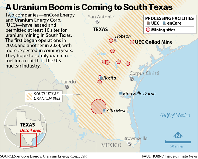 In the old ranchlands of South Texas, dormant uranium mines are coming back online. A collection of new ones hope to start production soon, extracting radioactive fuel from the region's shallow aquifers. Many more may follow.