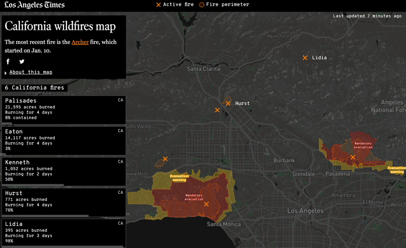 Burned 14,117 acres and many structures in Altadena and Pasadena. Additional evacuation orders were mandated Thursday afternoon when fire climbed toward Mt. Wilson. Other mandatory evacuations were lifted as city officials notified residents in Glenoaks Canyon and Chevy Chase Canyon that it was safe to return to their homes. Gov. Gavin Newsom posted on X on Friday morning that the fire was 3% contained as of 7:30 a.m.