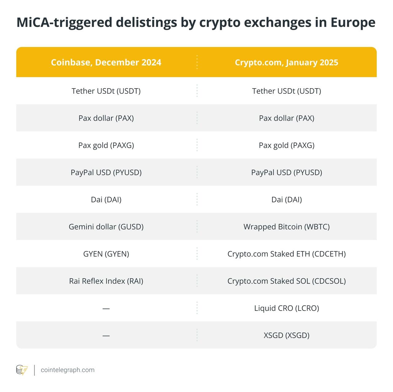 stablecoin and nine other tokens on Jan. 31 to comply with MiCA regulations.