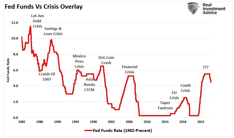 However, as the history of Fed rate-cutting cycles shows, the Fed often “reacts“ to economic events that undermined their previous assessments of lagging economic data. In other words, the Fed is almost always “too late” in enacting policy changes.