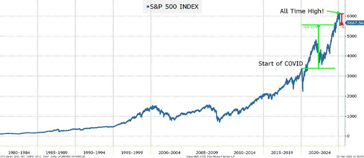 We were at an all-time, like highest level ever, as recently as February 19th. The S&P 500 is down 5.7% in a month and 3.5% year to date.