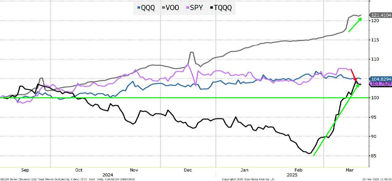 TQQQ – a $21 billion 3x Nasdaq 100 ETF has seen inflows surge. I do have to give the “degens” who trade TQQQ (I use the term affectionately) credit for selling out during the rally, but they are showing the exact opposite of capitulation. People seem to want to mock this fund, despite it controlling $63 billion of Nasdaq 100 risk in a risky form, while celebrating the potential for pension fund rebalancing, which is a similar size. Just because something is weird and quirky, doesn’t mean it isn’t useful.