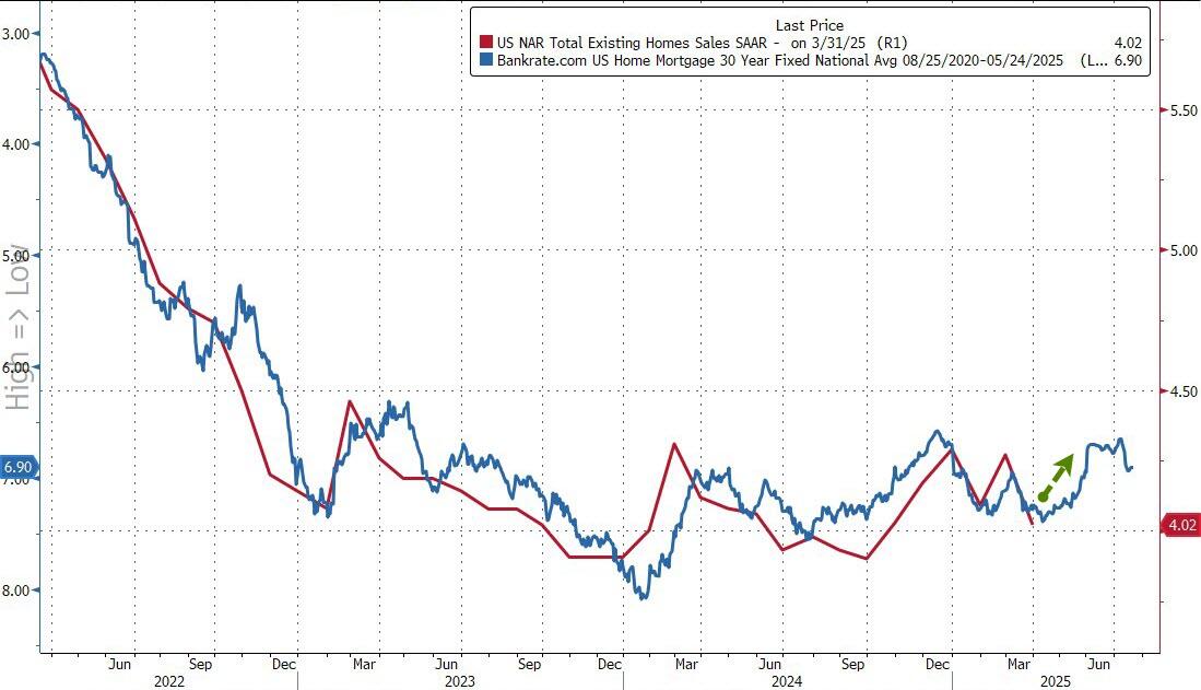 The drop in sales aligns perfectly with the lagged rebound in mortgage rates, which suggests the next two months will see an improvement before weakness resumes...
