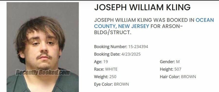 Ocean County Prosecutor Bradley D. Billhimer, New Jersey Department of Environmental Protection Commissioner Shawn M. LaTourette and Ocean Township Chief of Police Michal Rogalski announced that on April 23, 2025, Joseph Kling, 19, of Ocean Township (Waretown), was charged with Aggravated Arson and Arson in connection with a wildfire that started in Waretown on April 22, 2025, and continued to spread throughout the southern Ocean County area