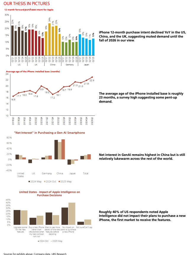 Average iPhone Age Climbs: The average iPhone in use is now 22.9 months old, the highest ever recorded by UBS, indicating delayed upgrade cycles.