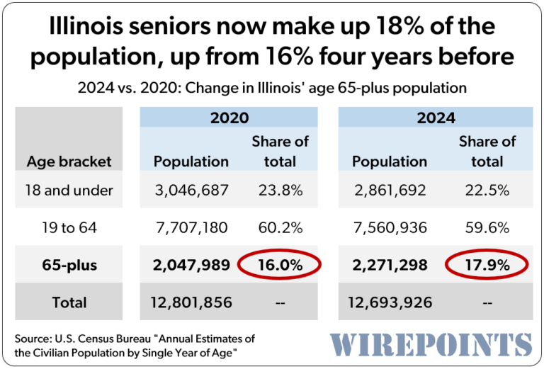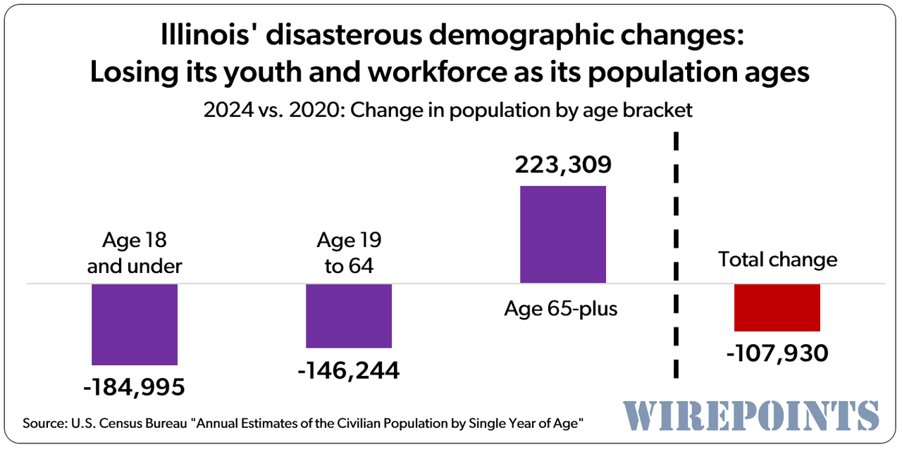 A review of U.S. Census population data since 2020, including fresh 2024 data released this week, reveals a perfect demographic storm that’s likely to worsen Illinois’ downward spiral.