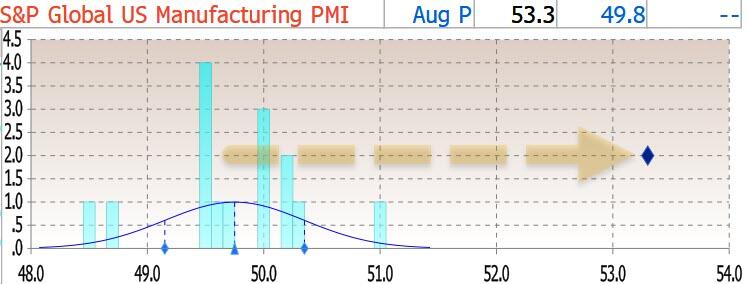 Commenting on the report, Chris Williamson, Chief Business Economist at S&P Global Market Intelligence said that the "strong flash PMI reading for August adds to signs that US businesses have enjoyed a strong third quarter so far. The data are consistent with the economy expanding at a 2.5% annualized rate, up from the average 1.3% expansion seen over the first two quarters of the year."