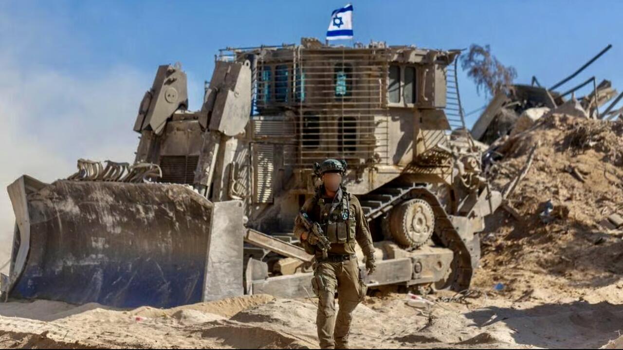 Qassam vs IDF in Khan Yunis: Yassin strike with a Tandem-85 warhead vs an IDF D9 armoured bulldozer on 17 June. [Qassam Brigades 27/6] https://t.co/8jJVVXrPJV