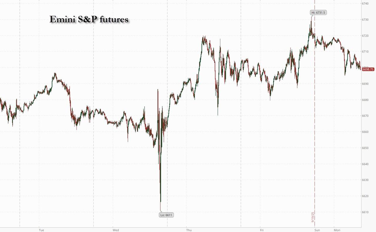 It's a relatively quiet week. According to DB's Henry Allen, the data highlight this week will be Friday's US core PCE deflator which should print softer than feared a few weeks ago given the recent inputs from other inflation releases. The main events outside of this will be a series of Fed speakers (at least 16 this week, with 4 on deck today) who can give their own spin on a complicated FOMC last week where the dots were a little all over the place. The global flash PMIs tomorrow will be the other main highlight but its not likely to be a major mover with most main economies seemingly fairly stable at the moment.