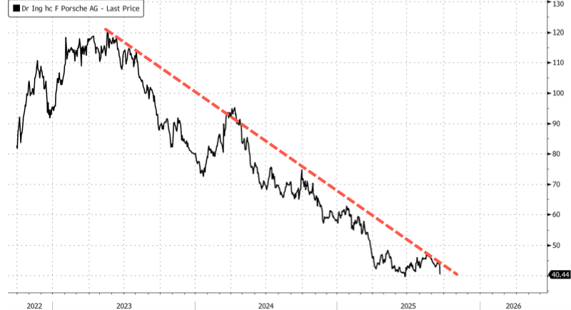Friday's profit warning marked the fourth time this year that Porsche cut guidance, with shares down 28% year-to-date. The slump has pushed the automaker so low that it is now set to be removed from the DAX, Germany's benchmark index.