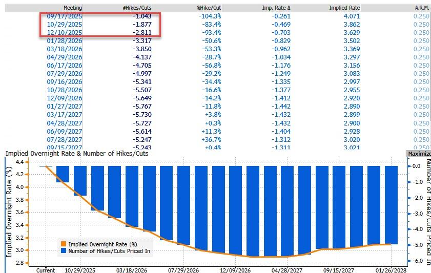 10:00 AM St. Louis Fed President Musalem (FOMC voter) speaks: St. Louis Fed President Alberto Musalem will give remarks on the outlook for the US economy and monetary policy at an event hosted by Brookings Institution’s Hutchins Center on Fiscal and Monetary Policy. Following his remarks, he will be interviewed by David Wessel, director of the Hutchins Center. Q&A is expected. On September 3, Musalem said, “Recent data have further increased my perception of downside risks to the labor market…, [and] looking ahead, I expect the labor market to gradually cool and remain near full employment with risks tilted to the downside.”