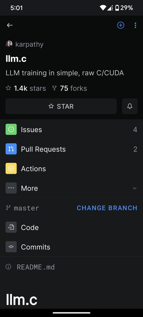 Andrej Karpathy可能正在尝试重新设计一个更简单、更原始的C/CUDA架构来做LLM的训练