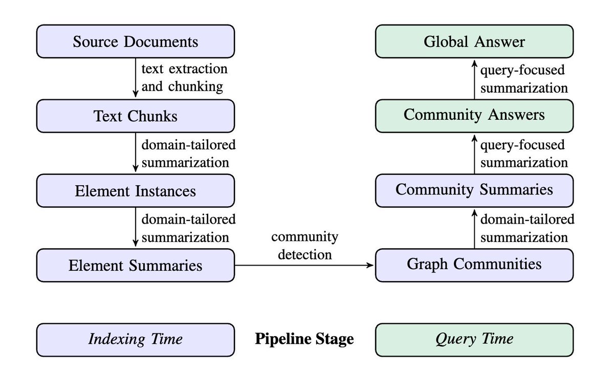 2. 社区摘要与映射-归约方法:通过生成社区摘要并利用映射-归约方法,GraphRAG 能保留全局数据上下文中的所有相关内容,提供更加全面、精准的回答。