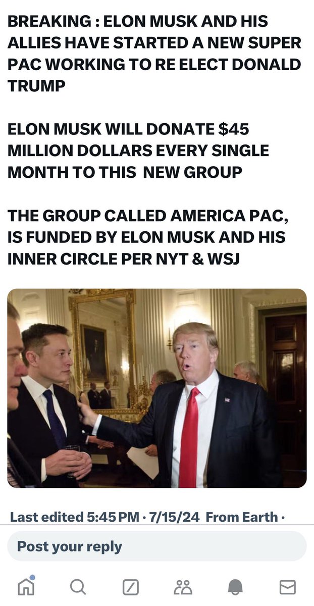 惊爆消息!埃隆·马斯克和他的团队成立了一个新的超级政治行动委员会America PAC,旨在支持特朗普连任总统。马斯克每月将捐赠4500万美元!这个消息肯定会在政治圈引起巨大反响。ElonMusk Trump2024 SuperPAC AmericaPAC https://t.co/eVxmOyjdEW