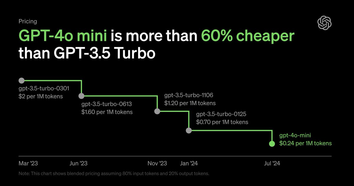 GPT-4o mini的推出,使得高性价比的AI变得更加普及,推动了AI应用的广泛发展。