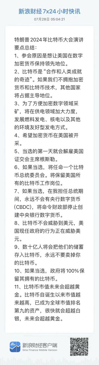 🇺🇸 唐纳德·特朗普2024年比特币会议演讲摘要: