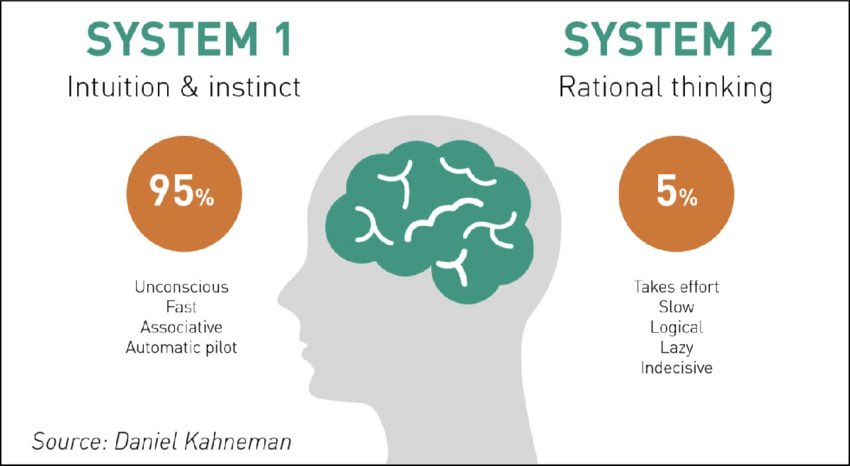 著名心理学家丹尼尔·卡尼曼 (Daniel Kahneman) 在他的著作《Thinking, Fast and Slow》中提出了两种思考模式的理论框架:
